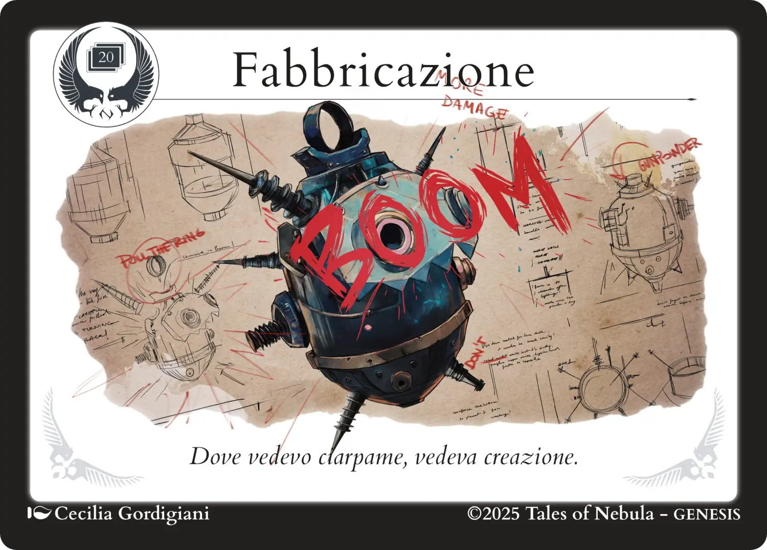Come regola generale, è possibile chiamare in gioco questa carta per fabbricare qualunque tipo di oggetto, tuttavia è necessario prestare particolare attenzione alle circostanze della Narrazione per evitare che i Personaggi si trasformino tutti in fabbricanti leggendari.