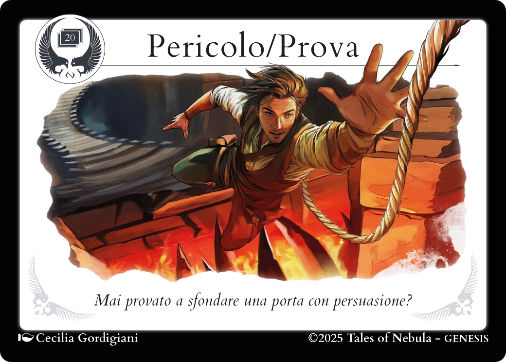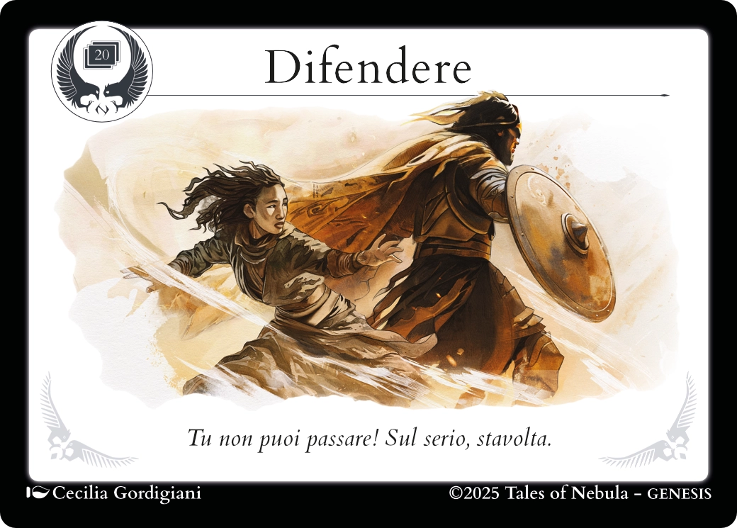 Se nella Narrazione viene descritta un’azione mirata a intercettare un pericolo a cui si è già soggetti, è opportuno chiamare in gioco la carta Pericolo/Prova, piuttosto che Difendere. Questo non significa che non potrai aiutare altri Personaggi in difficoltà, ma solamente che per farlo devi prima essere fuori pericolo.