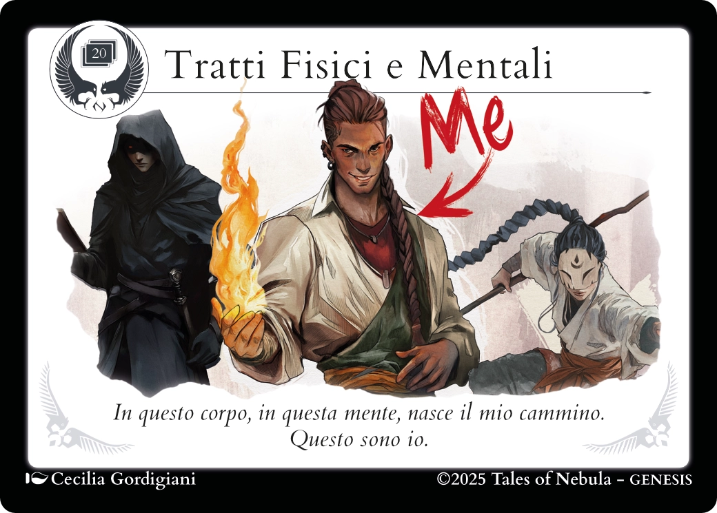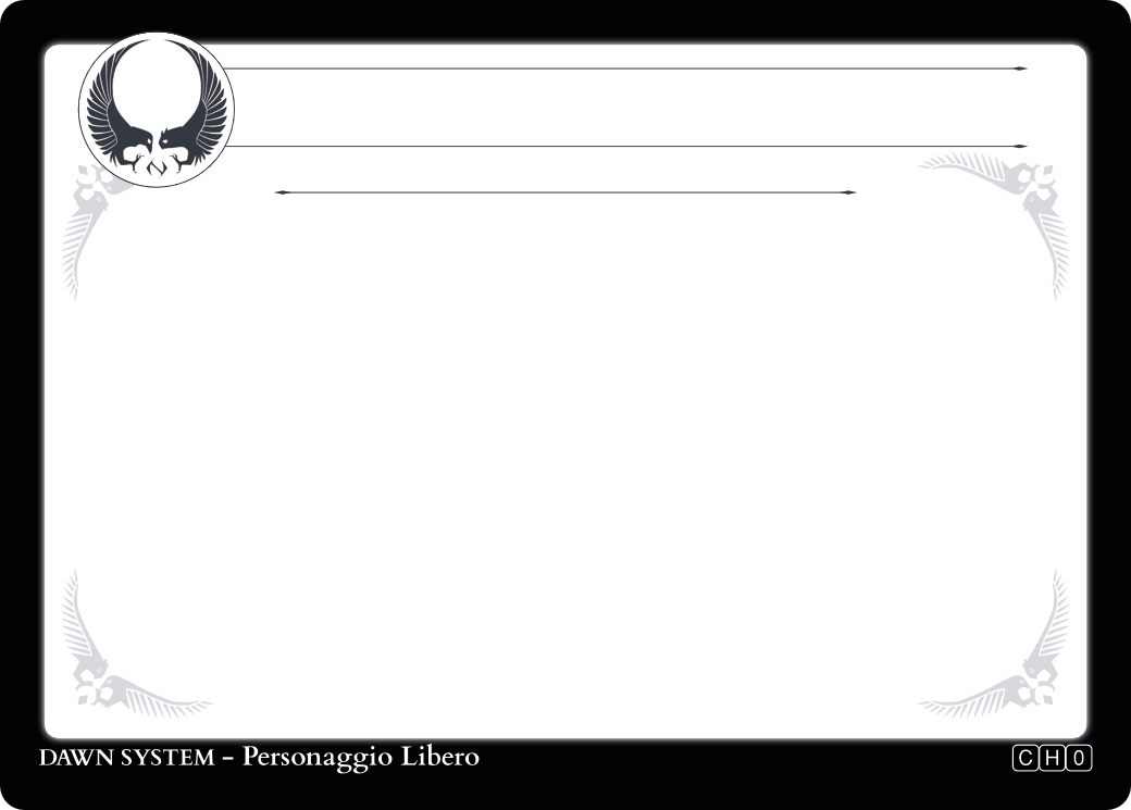 Clicca sul fronte della carta Personalizzabile per la guida alla creazione del Personaggio, clicca sul retro per la guida alla creazione della sua Unicità.
