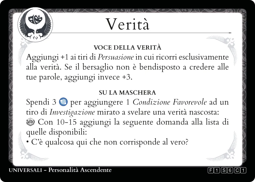 Ottenere un doppio 10 significa portare a compimento l’azione al di sopra di ogni aspettativa. Non perdere questa occasione per spingere la Narrazione nel reame dello straordinario!