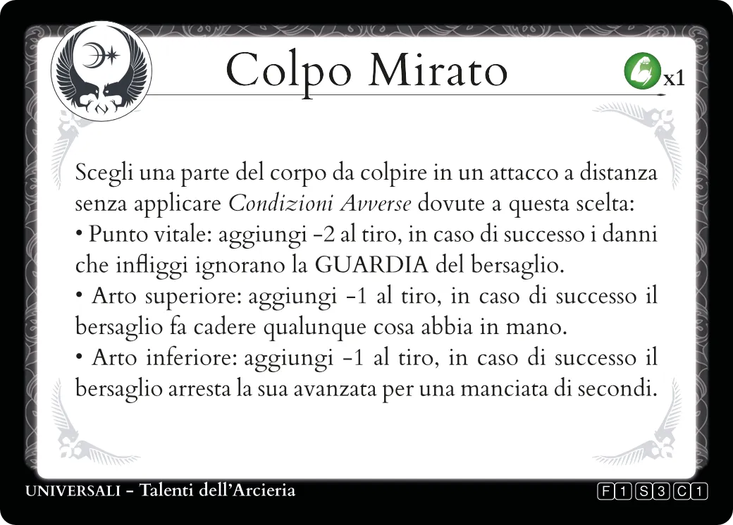 Le carte abilità pensate per specializzarsi nell'arcieria, compatibili con qualsiasi ambientazione, sono contrassegnate così: