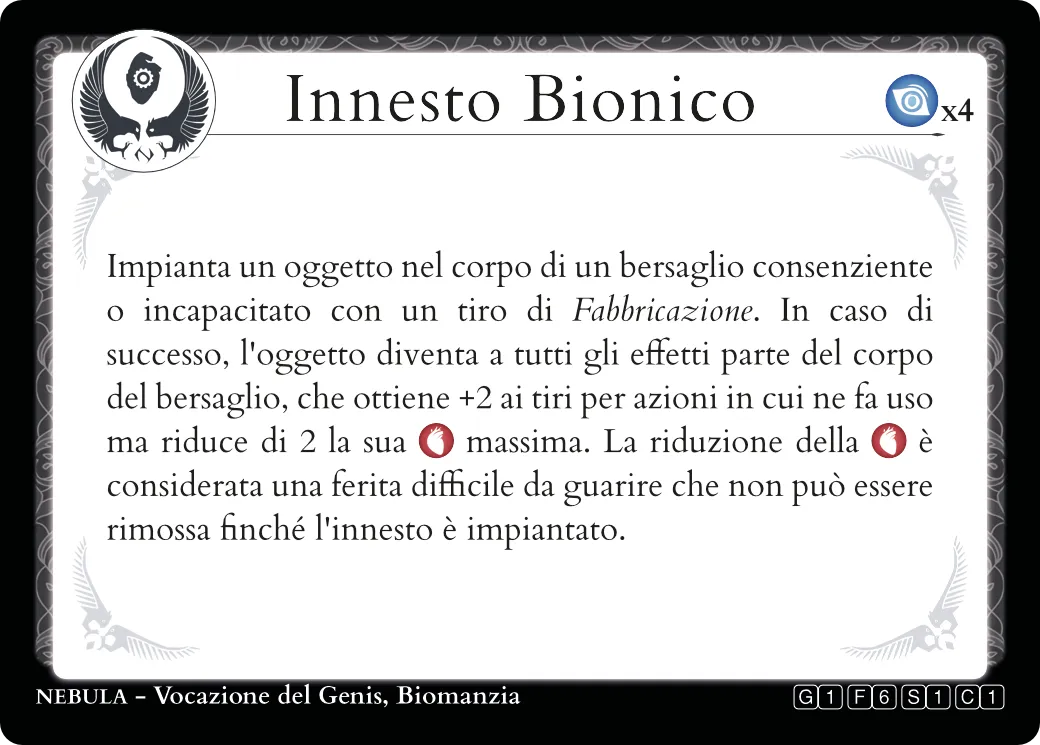 Carte che non presentano alcun costo possono essere attivate liberamente e ripetutamente, fintanto che Narratore e Giocatori lo trovano appropriato per la Narrazione.