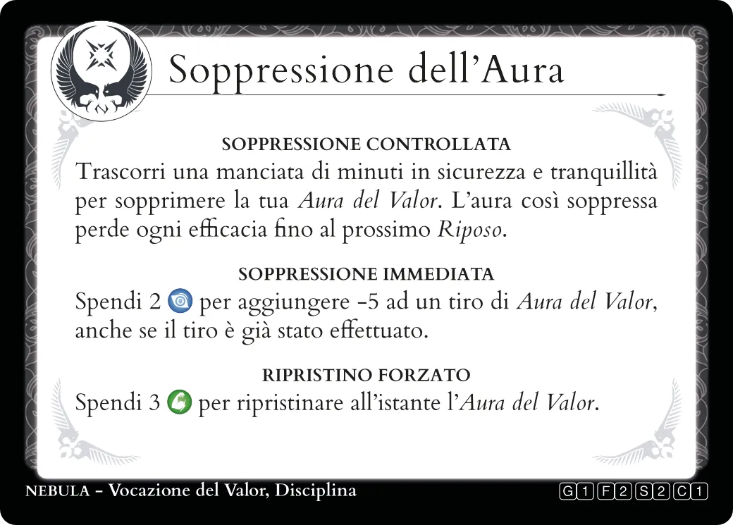 La GUARDIA rappresenta la tua capacità di ridurre i danni imminenti. Ogni volta che stai per subire dei danni, potrai ridurli di un ammontare pari al tuo valore di GUARDIA.