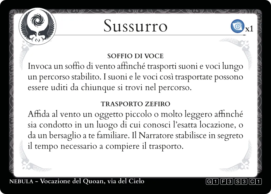 Le carte abilità appartenenti ad una delle sei vocazioni magiche esclusive del mondo di Tales of Nebula sono contrassegnate così: